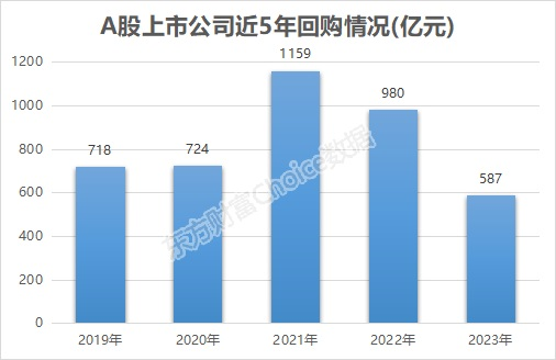 除了分红热情高涨外,2023年以来上市公司回购也相对活跃。东方财富Choice数据显示,截至12月21日收盘,年内已有超过800家A股公司进行回购,回购金额合计约587亿元。2022年,A股公司的回购金额约为980亿元。
