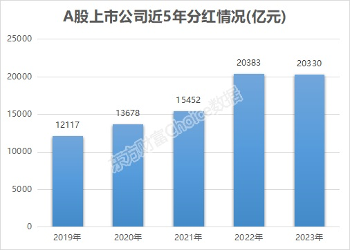 在政策鼓励下,近年来上市公司分红热情持续提升。东方财富Choice数据显示,截至12月21日,2023年有逾3400家公司进行分红,分红总额达2.03万亿元,继2022年分红2.04万亿元后,再破2万亿元关口。多家龙头公司出手“阔绰”,大手笔现金分红频现。