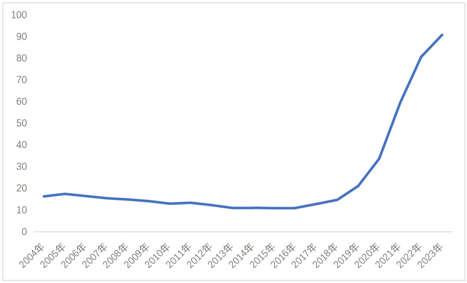 图1:2004至2023年全球ESG词条热度